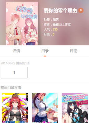 简介: 漫画《爱你的零个理由》简介:超市打折促销,她和他同时抢到最后一个东西,两人都不肯放手,无奈身为一个大男人,只好让步。回到小区却发现竟是同一单元楼的?!这以后低头不见抬头见的日子,怎么过?!