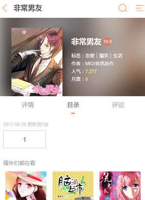 简介: 漫画《非常男友》简介:墨鱼的八卦为枯燥无味的ol生活,带来无穷无尽的话题。自从交了小鲜肉男友,一向低调宅腐的大龄剩女墨鱼一下子成为了女同事们茶余饭后的话题。可这小鲜肉背后的真相,只有墨鱼最清楚... ...